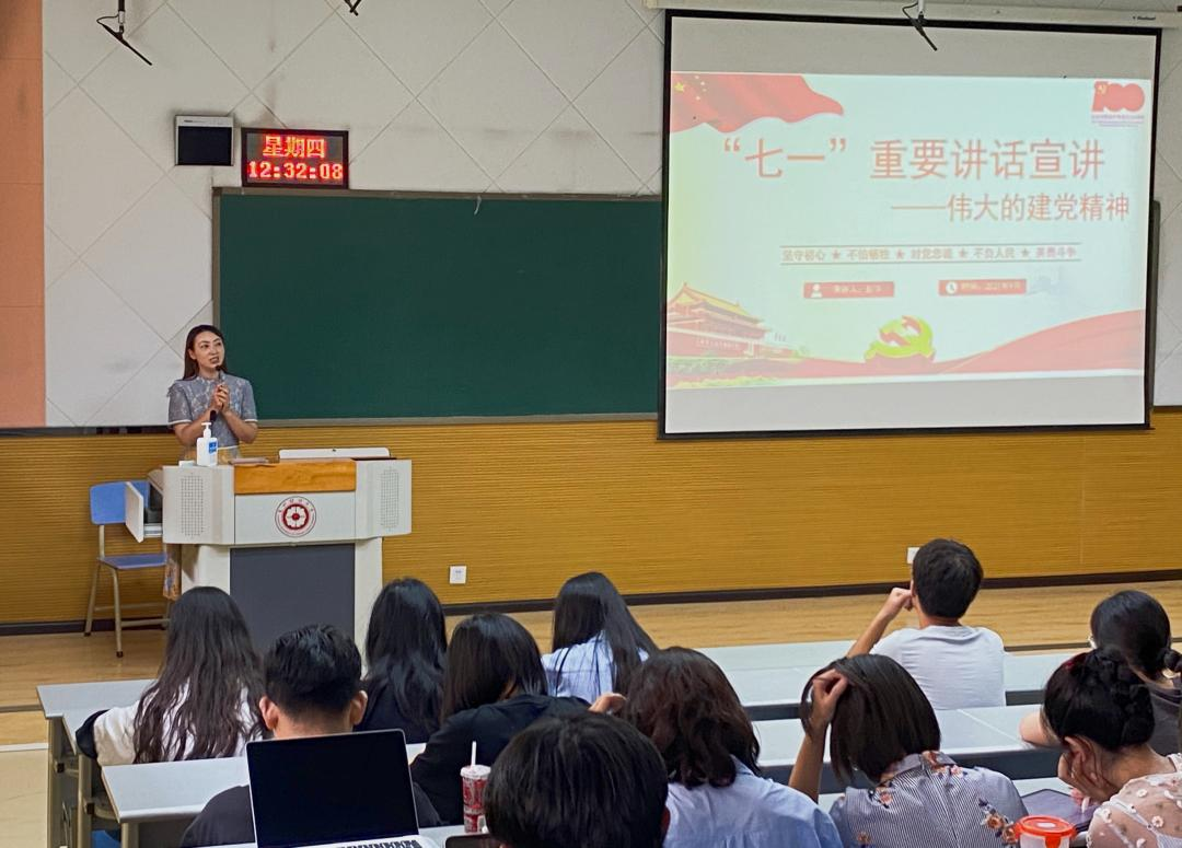 2021年9月16日,时博在线(中国)唯一官方网站党委副书记彭华在乐学楼为时博在线(中国)唯一官方网站各年级本科生、研究生代表作题为“伟大的建党精神”的习近平总书记“七一”重要讲话精神宣讲。
