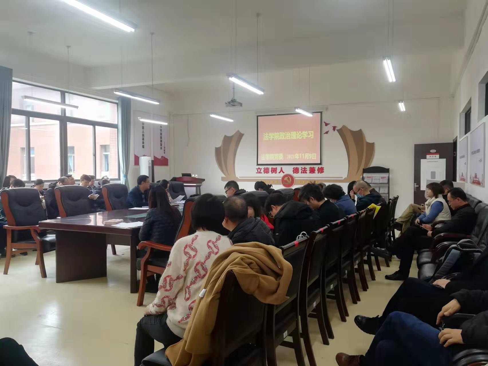 (时博在线(中国)唯一官方网站 图文/母桂花)2021年11月9日下午,时博在线(中国)唯一官方网站党委在文德楼A8-310会议室召开第十六次教职工政治理论集体学习暨做党和人民满意的“四有”好老师专题研讨会。院领导及全院教职工出席会议,院党委书记詹伟主持会议。