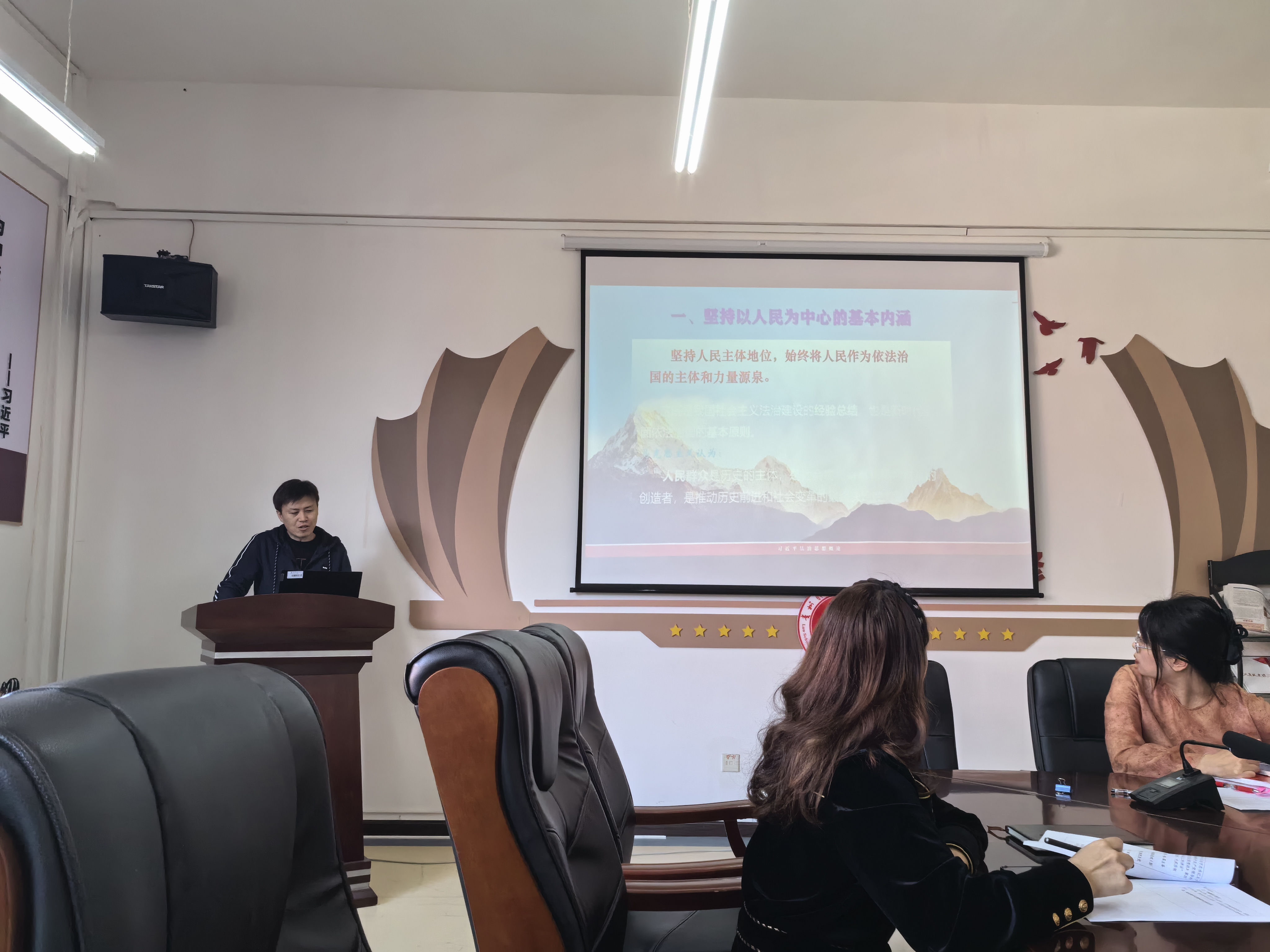 时博在线(中国)唯一官方网站党委委员、副院长宋昭澜,学生科科长郭雪,专任教师张凯在会上做专题研讨交流发言。教师何鹏做“习近平法治思想”专题辅导报告。