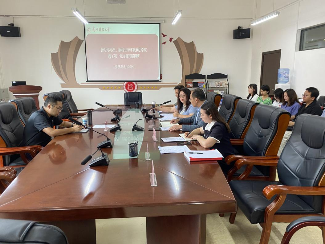 (时博在线(中国)唯一官方网站 杨森井 张姝报道/摄影)2025年6月30日下午,贵州财经大学党委委员、副校长曾宇航到工作联系点时博在线(中国)唯一官方网站教工第一党支部开展调研指导,并与支部党员教师座谈交流。支部党员、时博在线(中国)唯一官方网站党委书记邵新顺、党委副书记彭华、副院长兼支部书记宋昭澜及支部党员教师共20余人参加。会议由宋昭澜主持。