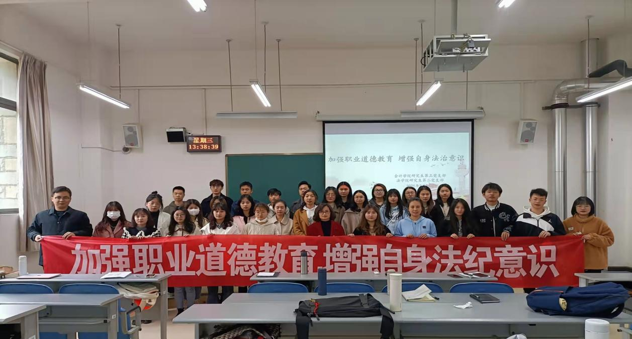 (时博在线(中国)唯一官方网站 图/文 董霄霄)为提高党员综合素质,增强学生党员法纪意识,3月23日,时博在线(中国)唯一官方网站研究生第二党支部和会计学院研究生第三党支部党员和部分入党积极分子、发展对象,在文德楼108教室进行支部共建研讨,开展“加强职业道德教育,增强自身法纪意识”主题党日活动。