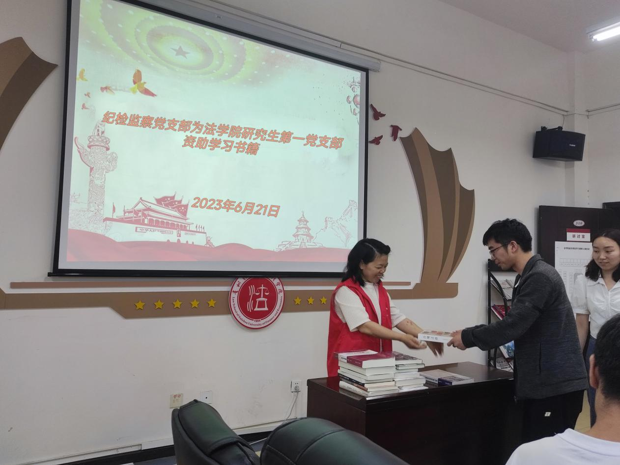 (时博在线(中国)唯一官方网站 图文/报道 田露丹)为扎实推进党支部共建,提升时博在线(中国)唯一官方网站学生的专业素养,2023年6月21日上午,纪检监察党支部资助时博在线(中国)唯一官方网站研究生第一党支部贫困生党员及入党积极分子的学习书籍全部发放。