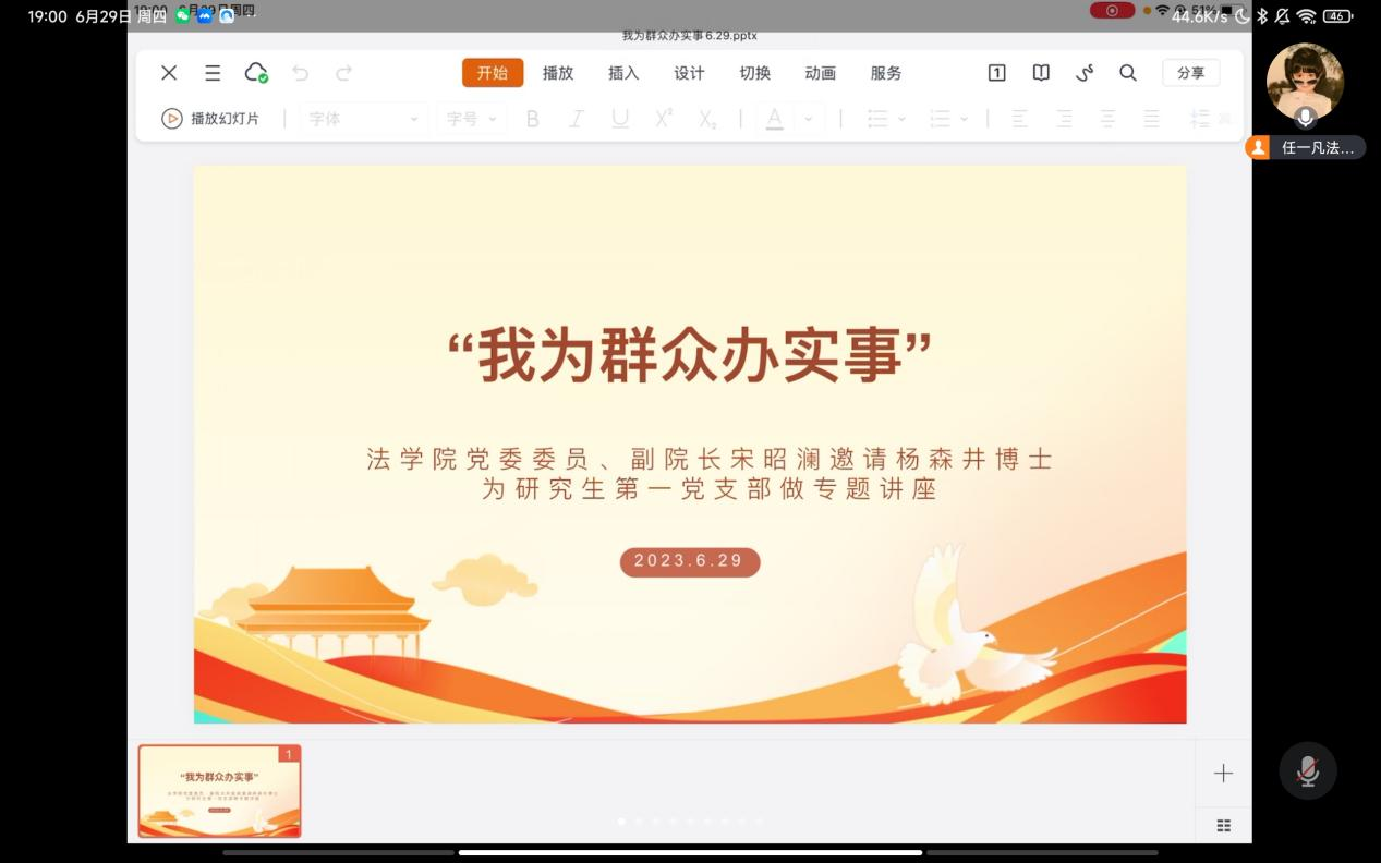 (时博在线(中国)唯一官方网站 图文/报道 田露丹)为解答学生对于论文写作的疑惑,2023年6月29日,联系研究生第一党支部的时博在线(中国)唯一官方网站党委委员、副院长宋昭澜邀请杨森井博士为党支部全体党员做“论文写作与学术研究”专题讲座,本次讲座通过线上腾讯会议的方式举行。