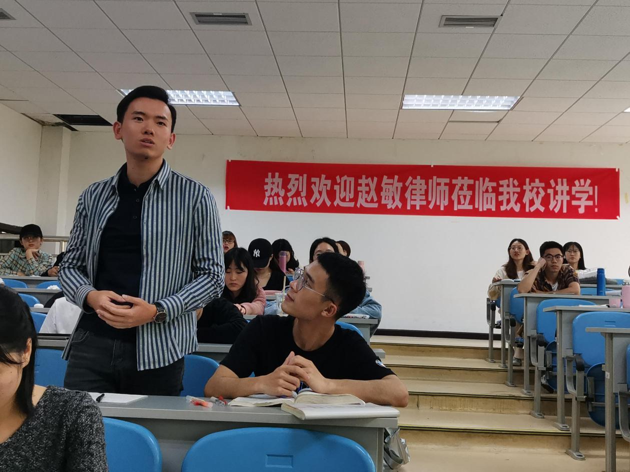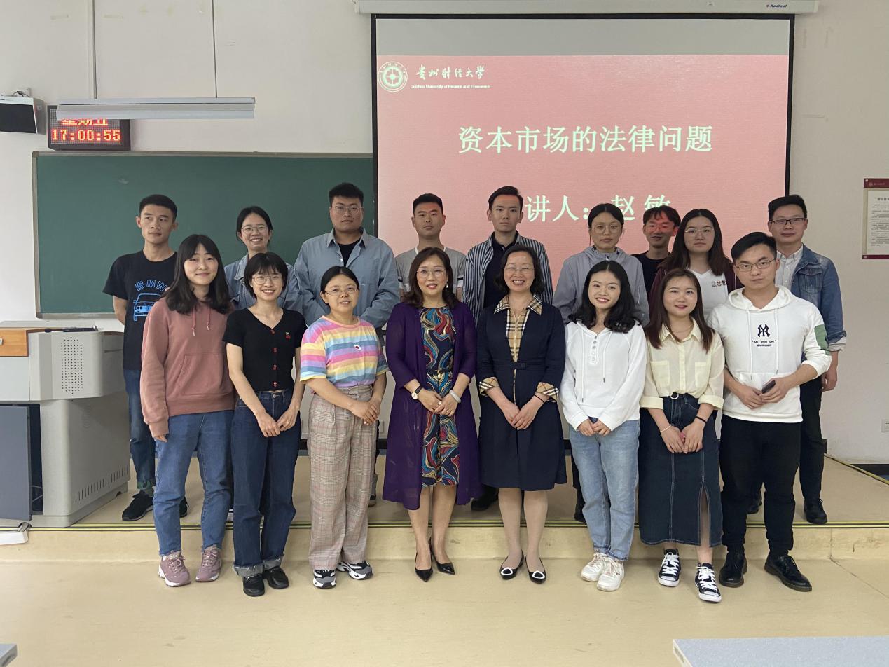 为营造学生学术创新氛围,提高学生的学习兴趣和学术创新参与率,活跃学术思想,引发学术争鸣,促进学术交流。2021年6月11日下午2点,我院特邀经济学博士、法学硕士赵敏律师在贵州财经大学花溪校区乐学楼1-2阶梯教室作“资本市场的法律问题”专题讲座。时博在线(中国)唯一官方网站副院长陈玉梅(正处级、主持工作)列席,时博在线(中国)唯一官方网站辅导员杨兴莉主持,时博在线(中国)唯一官方网站全体研究生参加此次讲座。