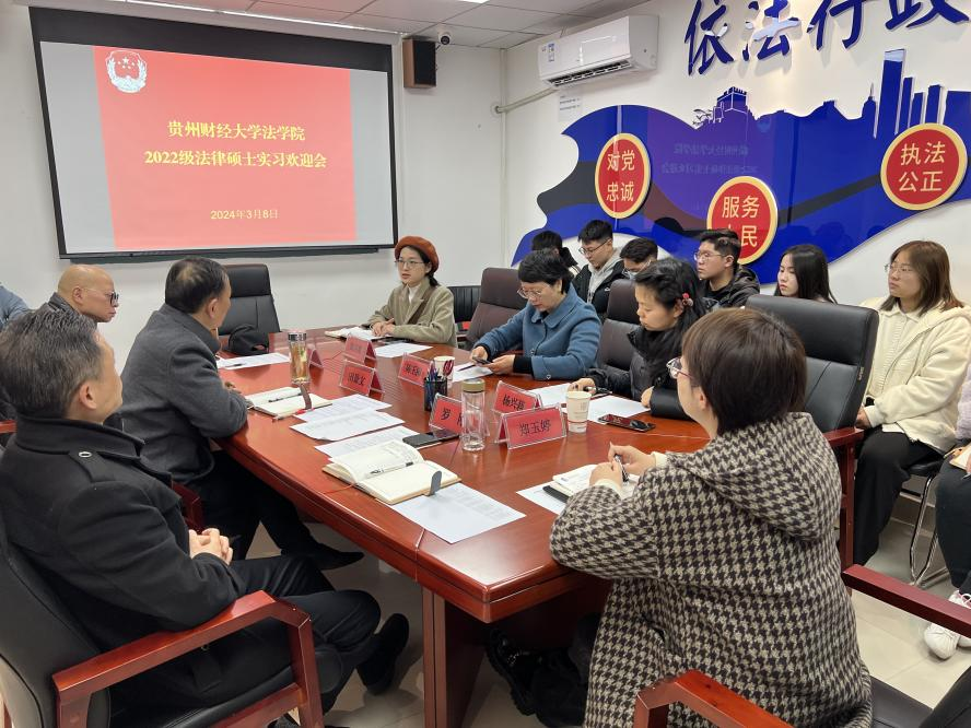 在实习欢迎会上,花溪区司法局党组书记、局长田景文对学生的到来表示热烈欢迎,介绍了花溪区司法局日常工作。陈玉梅对花溪区司法局为学生们提供宝贵的实习机会表示衷心感谢,介绍了学生的基本情况,并做了实习纪律等相关要求。司法局党组成员、政工科科长罗刚对实习进行了详细安排,表示将为学生的实习提供好相关保障。