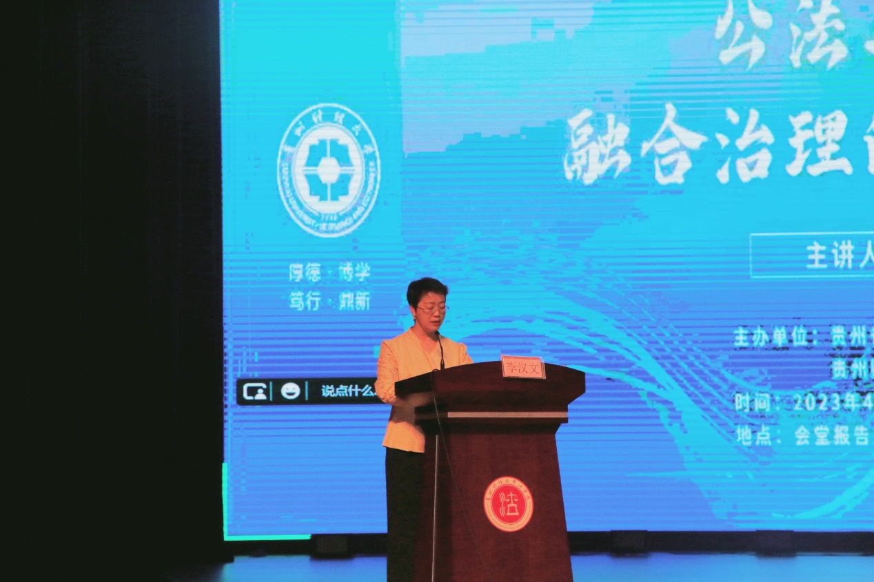 (时博在线(中国)唯一官方网站 图文/报道 邹晓丹 张月娇)2023年4月13日早上9时,由时博在线(中国)唯一官方网站、贵州省西南政法大学校友联合举办,时博在线(中国)唯一官方网站承办的《公法与私法融合治理的若干问题》专题讲座在会堂报告厅如期举行。本次讲座由中国法学会副会长、湖南大学教授、博士研究生导师江必新教授主讲,贵州财经大学副校长李汉文教授致辞,时博在线(中国)唯一官方网站院长陈玉梅教授主持。西南政法大学部分校友、时博在线(中国)唯一官方网站教师以及贵州财经大学学生近600余人线上线下共同聆听本次讲座。