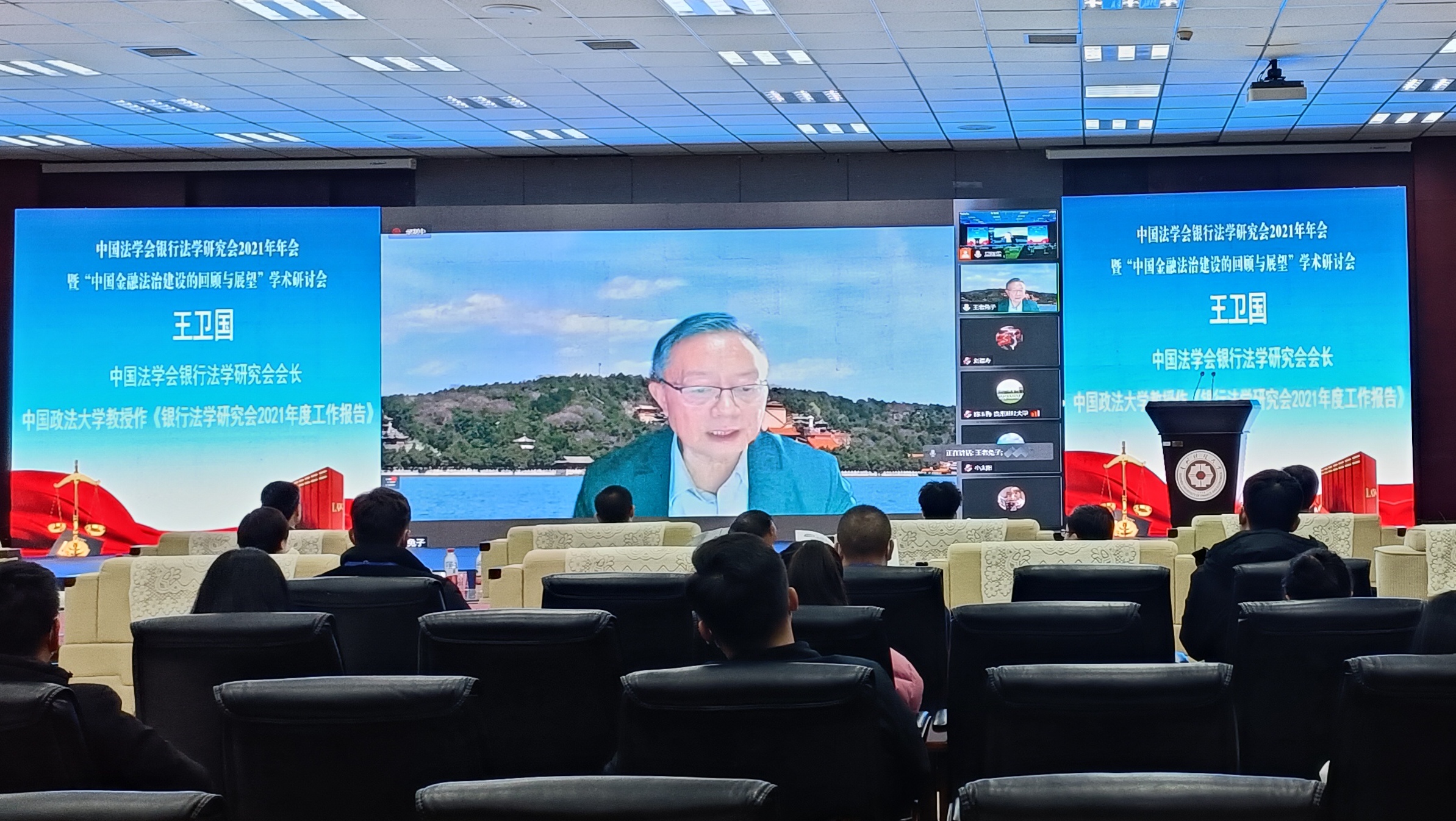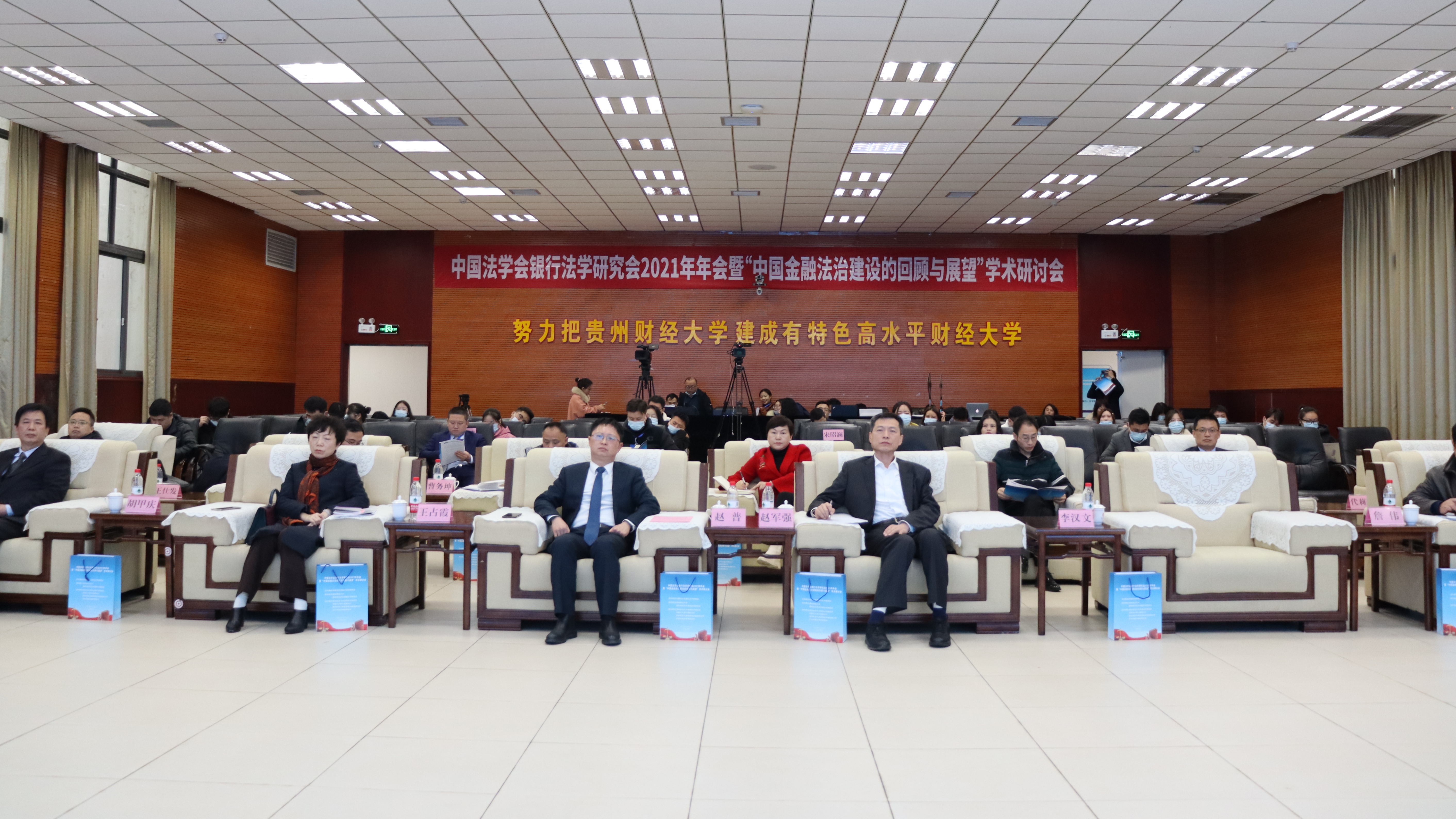 (时博在线(中国)唯一官方网站 唐沁馨 报道|摄影 米钰)2021年12月11日,时博在线(中国)唯一官方网站承办的中国法学会银行法学研究会2021年年会暨“中国金融法治建设的回顾与展望”学术研讨会在我校花溪校区成功举行。本次年会由中国法学会银行法学研究会主办,时博在线(中国)唯一官方网站和贵州省法学会金融法学研究会联合承办。贵州财经大学党委副书记、校长赵普教授,中国法学会党组成员、学术委员会主任张文显教授,中国法学会银行法学研究会会长、中国政法大学王卫国教授,中国法学会银行法学研究会名誉会长、原中国建设银行副行长黄毅,中国法学会银行法学研究会常务副会长、中国银保监会首席风险官刘福寿,贵州省法学会专职副会长兼秘书长王占霞,中国光大银行贵阳分行行长赵军强出席了本次年会,来自全国27家高校、银行及律师事务所的专家学者1500人参加了线上会议。会议由贵州财经大学党委委员、副校长李汉文教授主持。