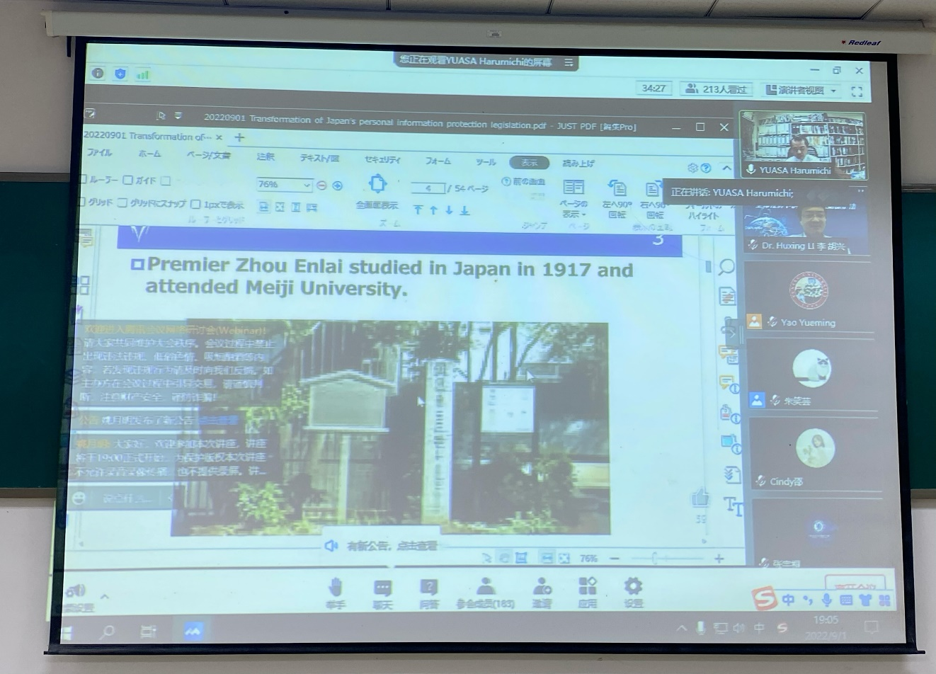 (时博在线(中国)唯一官方网站 图文/报道 杨洁芮)为促进数字法治国际交流合作,提升数字经济司法治理水平,2022年9月1日晚19点,时博在线(中国)唯一官方网站组织在校研究生200余人在乐学楼1-1在线观看了由北京大学时博在线(中国)唯一官方网站组织的“数字与法治”系列论坛。本次论坛由中国学者和日本、欧洲、美国的知名学者共同探讨“全球视野下的隐私与数据保护法”这一核心主题。此次专题为“日本个人信息保护立法的转变”,由日本明治大学全球治理研究科教授汤浅垦道(Yuasa Harumichi)作为开讲学者。