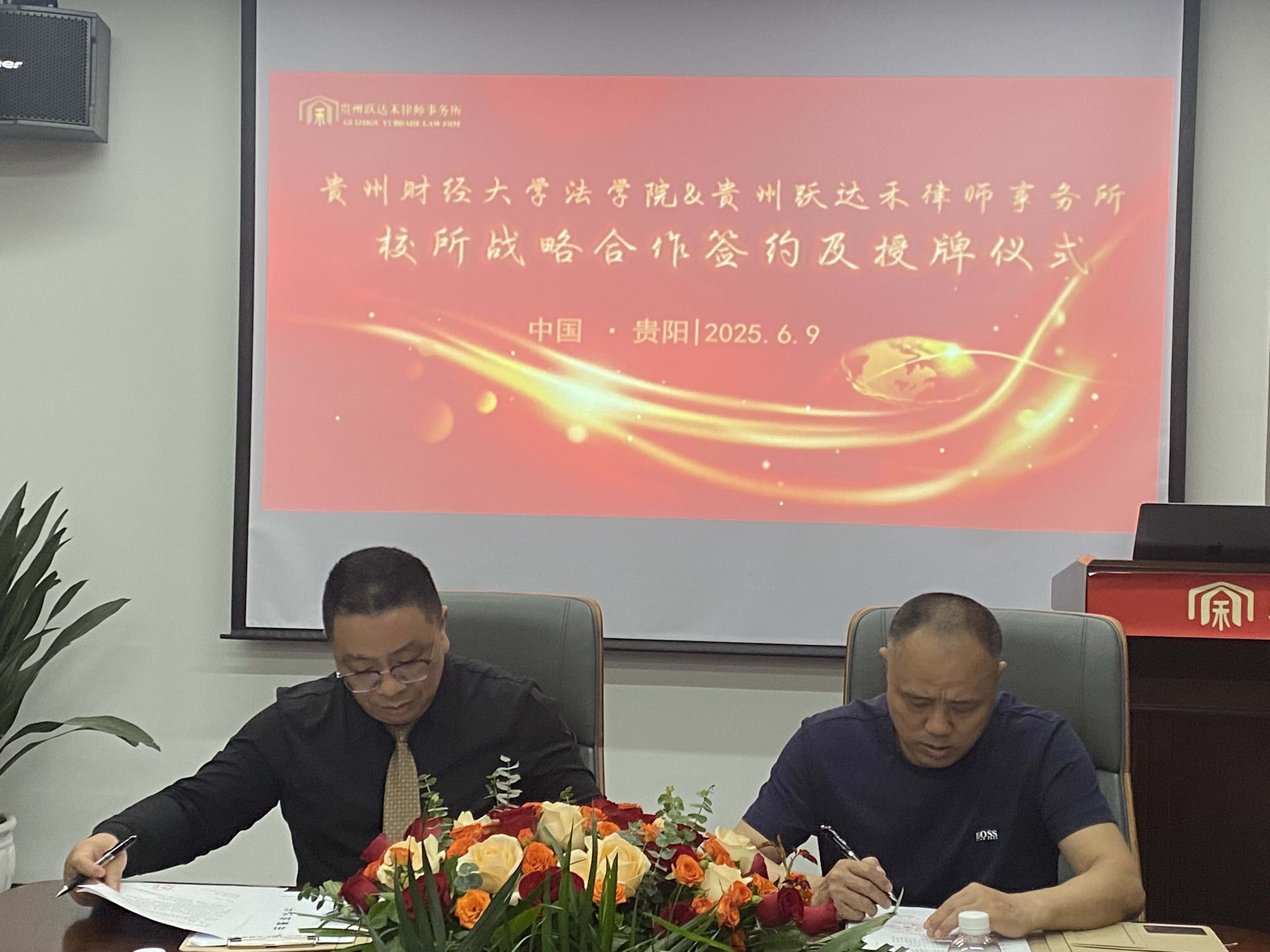 (时博在线(中国)唯一官方网站 向涛 报道摄影)6月9日,时博在线(中国)唯一官方网站党委书记邵新顺、副院长(主持工作)曹务坤、正处级专职组织员兼纪委书记代莉莎一行前往跃达禾律师事务所开展战略合作签约与授牌仪式。跃达禾律师事务所创始人谢忠俊等管理层出席会议。