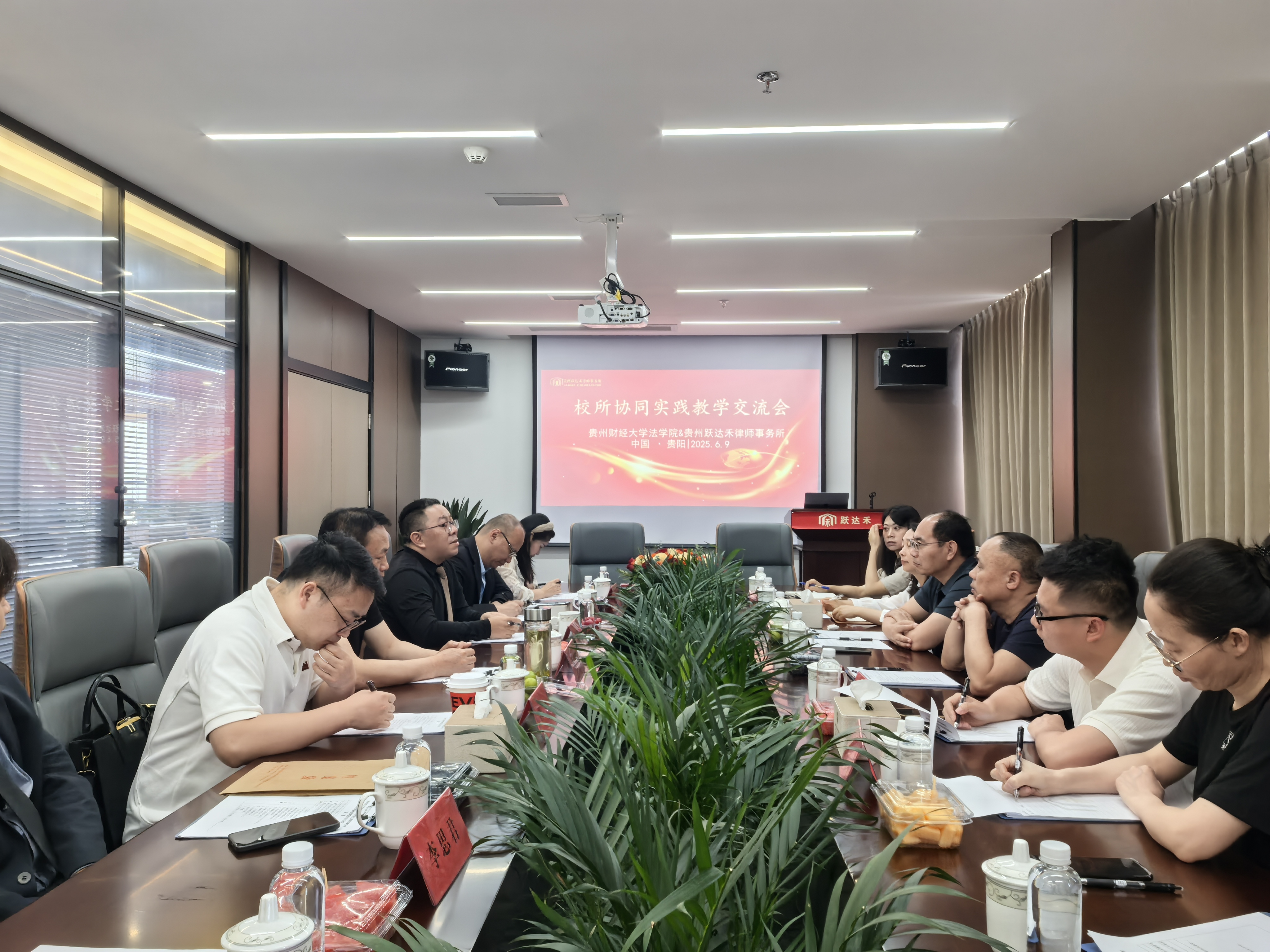 在会议上,谢忠俊、邵新顺分别对律师事务所和时博在线(中国)唯一官方网站的历史发展和现状进行了介绍。谢忠俊表示跃达禾始终致力于推动法律实务与高等教育融合,希望时博在线(中国)唯一官方网站可以提供法学理论支持,双方进行疑难案件探讨等。邵新顺指出双方可以围绕党建品牌、思政品牌和学术立院品牌建设,找到双方合作的契合点。曹务坤则表示期待通过合作实现双方的资源共享,围绕创新创业、模拟法庭、学术研究、就业实习等方面开展好合作,共同为贵州法律事业作出贡献。双方参会人员也围绕院所合作的相关细节进行了自由交流发言。