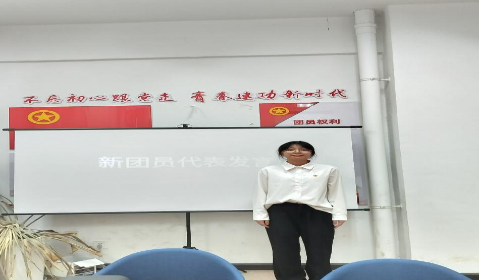 宣誓环节结束后,仪式进入第二项议程。新团员代表、2024级法学实验班团支部刘金媛作为新团员代表上台发言。她结合自身成长经历,分享了对共青团组织的认识:“入团不仅是荣誉,更是责任。作为法学专业学生,我们既要学好专业知识,更要以团员标准严格要求自己,未来在法治建设中贡献青春力量。”朴实的语言引发在场团员共鸣,现场响起热烈掌声。