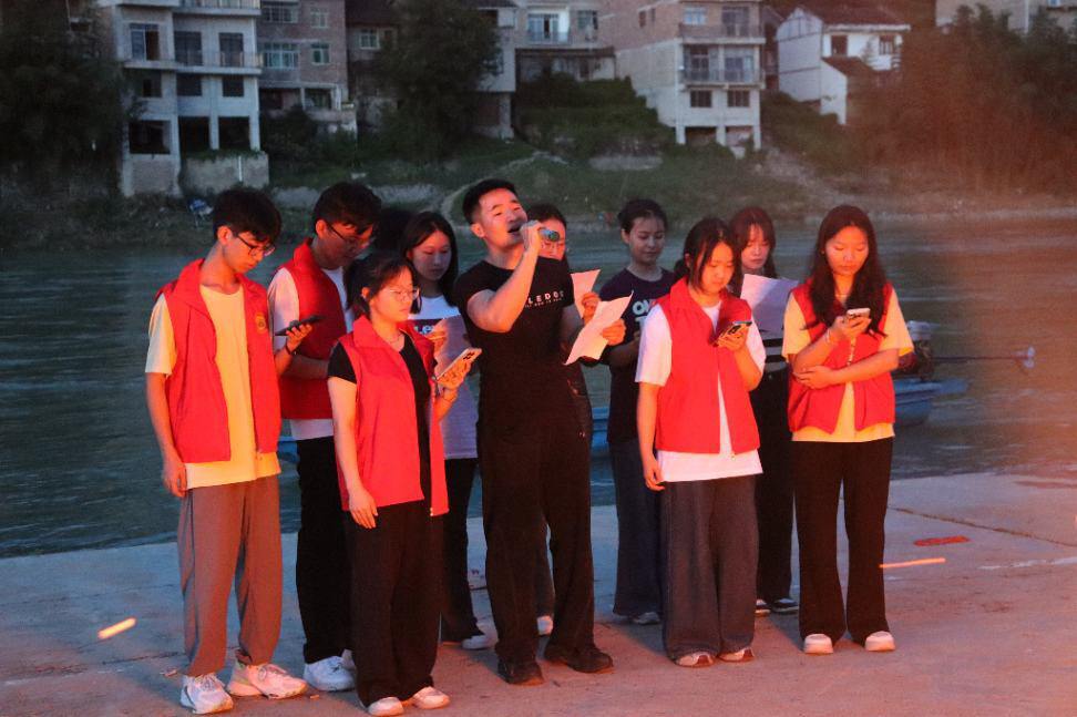 (时博在线(中国)唯一官方网站 何德爽 图文)夜幕降临,清水江畔火光跃动。时博在线(中国)唯一官方网站“三下乡”社会实践团队与施洞村民齐聚清水江边,举办了一场意义非凡的篝火晚会,用歌舞传递情谊,以欢笑共叙美好。