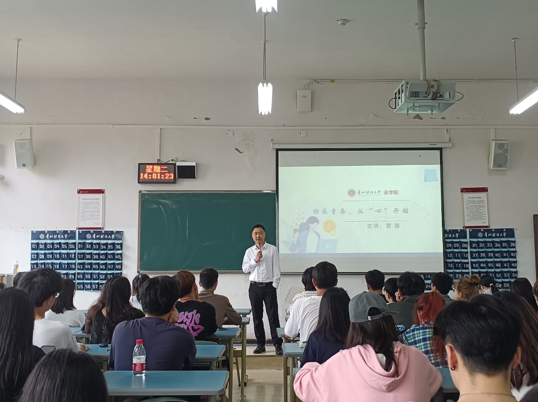 (时博在线(中国)唯一官方网站 张月娇 报道|摄影 罗慧)为进一步加强时博在线(中国)唯一官方网站大学生心理健康水平,提高学生心理调适能力,让学生能够以理性平和、健康积极的心态应对学习和生活中的挑战和困难。时博在线(中国)唯一官方网站邀请到国家二级心理咨询师、贵州大学心理健康教育咨询中心兼职心理咨询师曹浩副教授,于4月18日下午在博学楼2-19室为100余名同学开展题为《快乐青春,从心开始》大学生心理健康讲座。