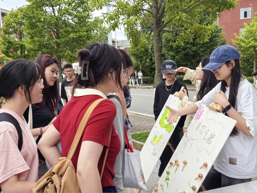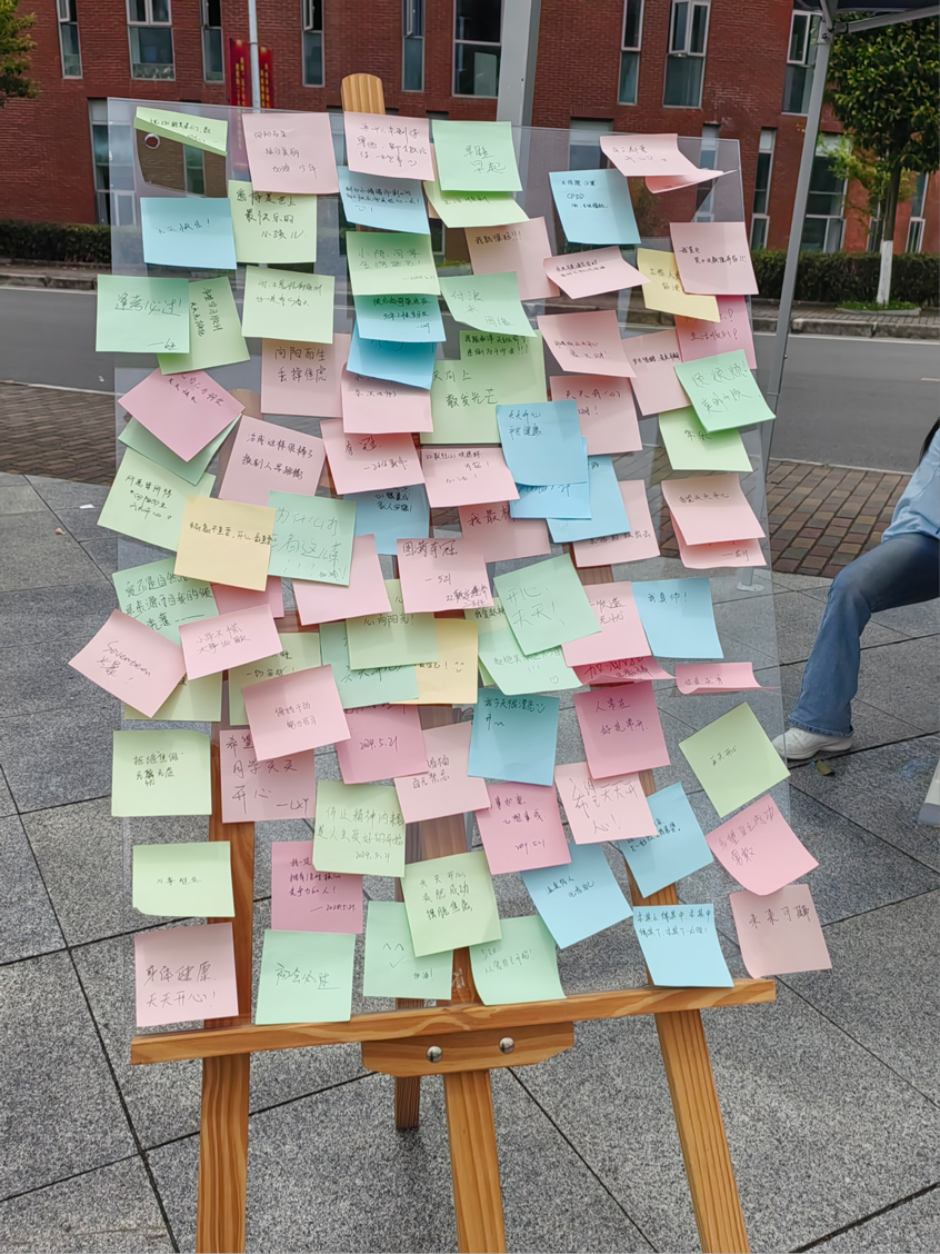 活动伊始,时博在线(中国)唯一官方网站在五四广场设置摊位摆点,由学院各班心理委员在点位上组织开展心理健康娱乐活动。各心理委员引导现场学生通过石头剪刀布等小游戏进行对决,营造热烈氛围,获胜学生即可获得精美糖果。学院也在点位布置了“心愿板”与“涂鸦墙”,现场同学或将写有愿望的便签纸挂在树上,许下美好的心愿;或在“涂鸦墙”上抒发自己的小想法,表达对生活、学习的期许。