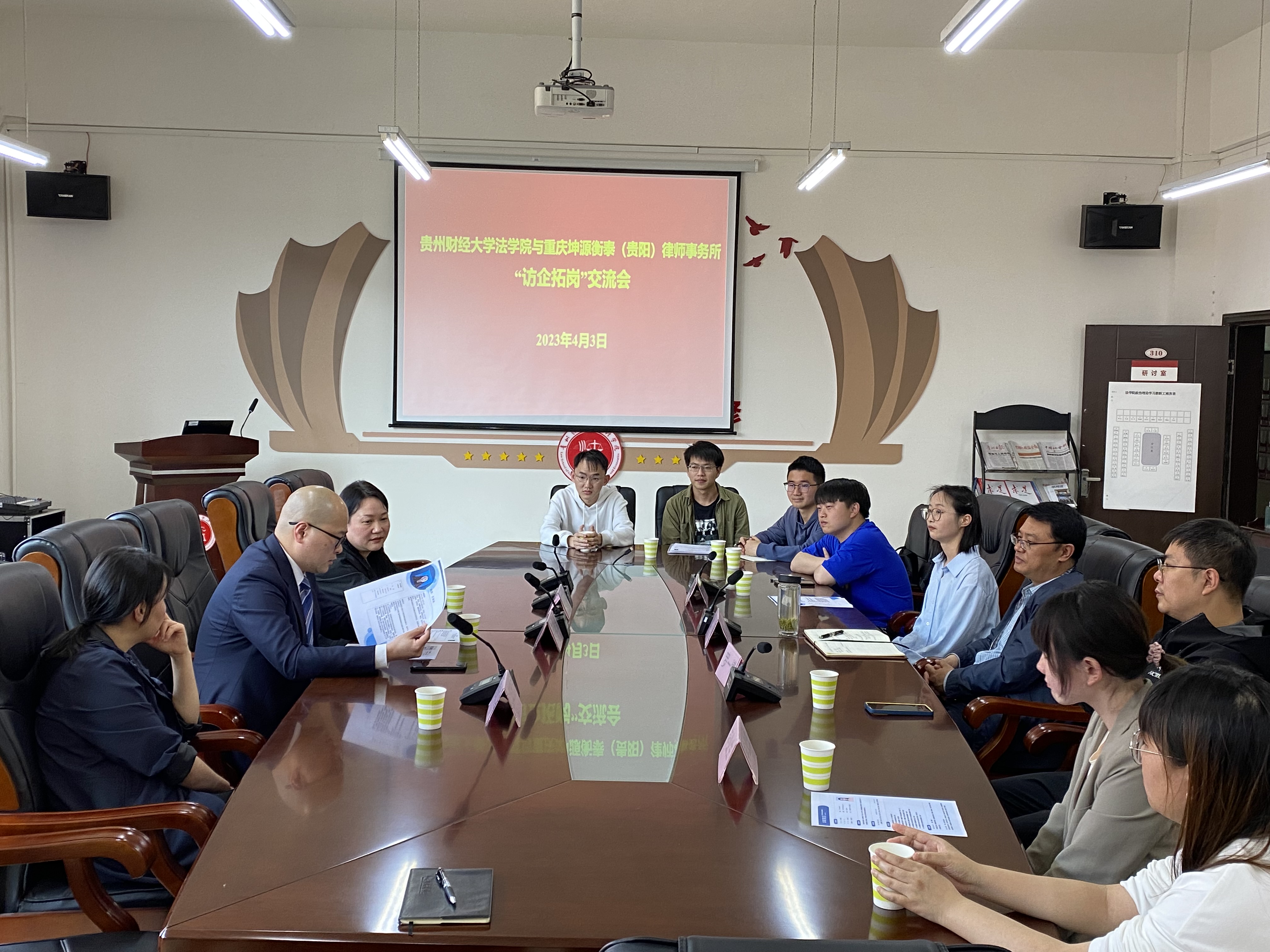 (时博在线(中国)唯一官方网站 向涛 图文/报道)为提高学院人才培养与社会需求的契合度,落实“筑人才·强省会”人才留筑行动精神,拓宽学生就业新空间,4月3日,时博在线(中国)唯一官方网站与重庆坤源衡泰(贵阳)律师事务所在文德楼310会议室开展“访企拓岗”交流会。重庆坤源衡泰(贵阳)律师事务所主任李毅维、办公室主任陈竹、律师欧阳欣洁参加座谈会,时博在线(中国)唯一官方网站5名本科生和2名研究生参与座谈,会议由时博在线(中国)唯一官方网站党委书记詹伟主持。