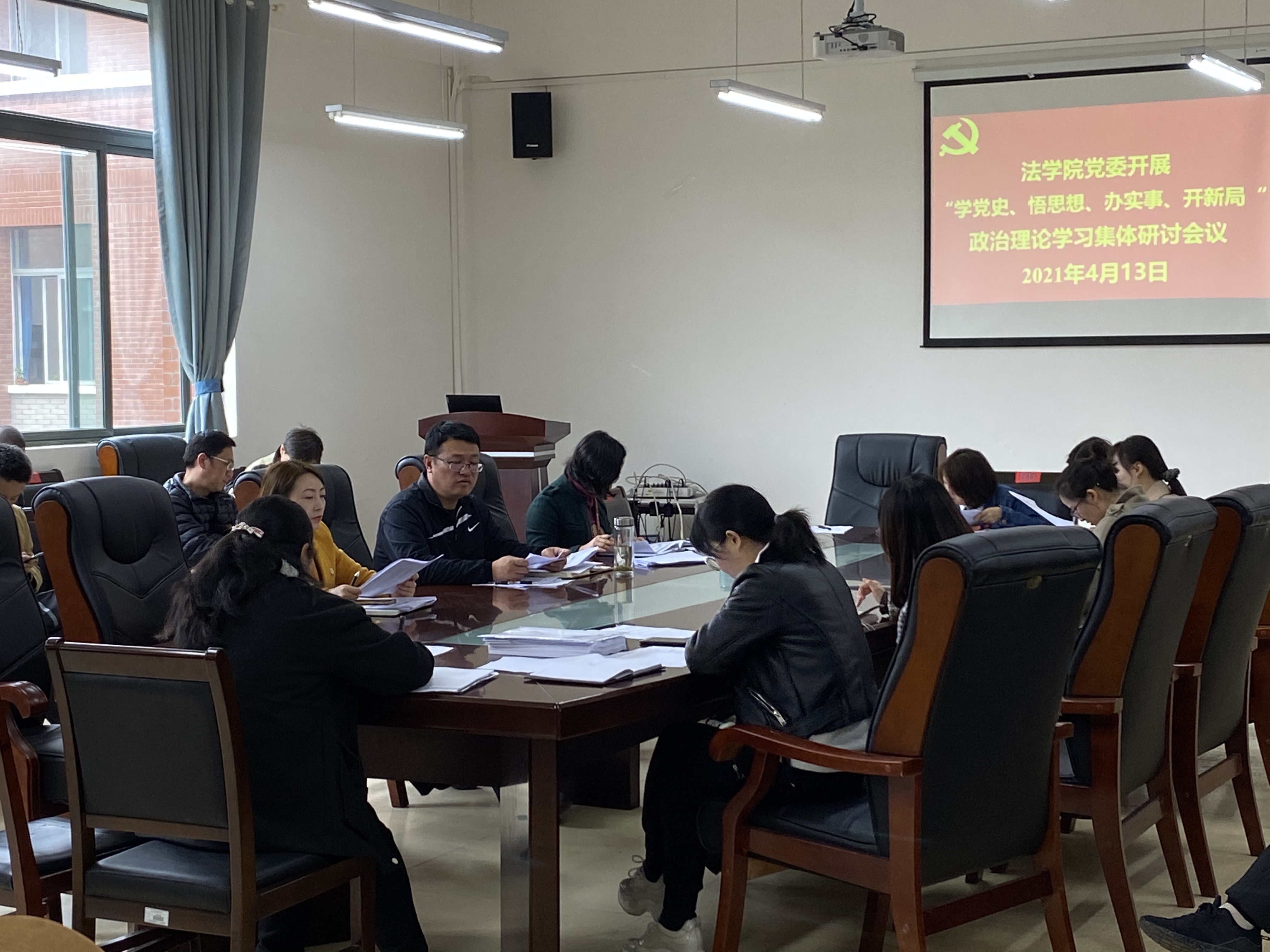 最后,学院党委书记詹伟对党史学习教育工作进一步作了部署和要求。他要求全体党员师生要牢记殷切嘱托、忠诚干净担当、喜迎建党百年;认真学习党史,重点抓好各支部的党史学习教育,做到“学史明理、学史增信、学史崇德、学史力行,学党史、悟思想、办实事、开新局”。并提出全院教职工要将党史学习教育融入到教育教学中,推动学院持续快速发展,培养出让社会满意的合格法律人才。