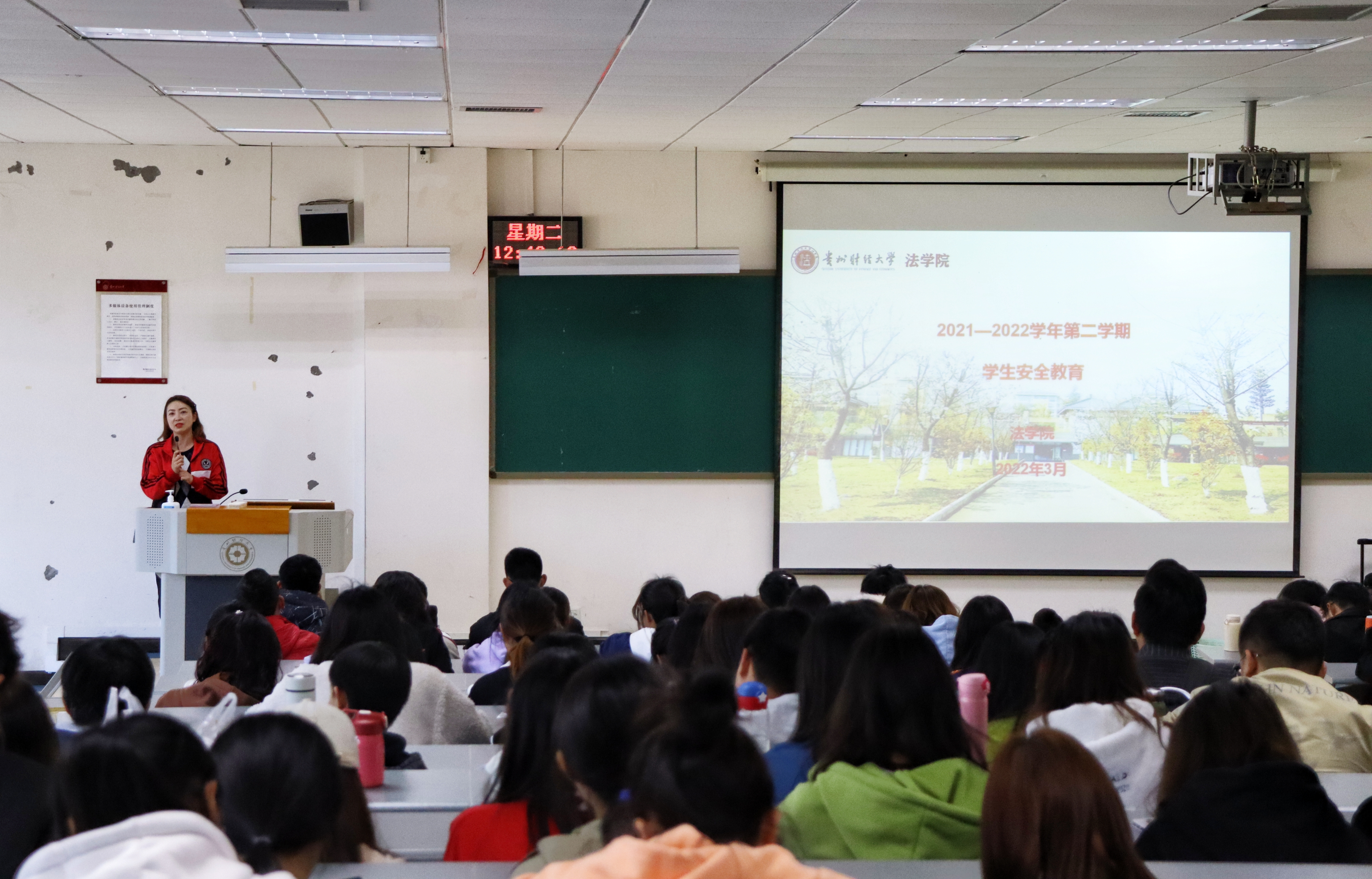 彭华就学生安全问题进行了详细讲解。从疫情防控安全、用水用电安全、交通出行安全、人身财产安全等多个方面内容对学生进行了教育,列举了一些真实的安全事故案例,引导同学们进一步提高安全意识。