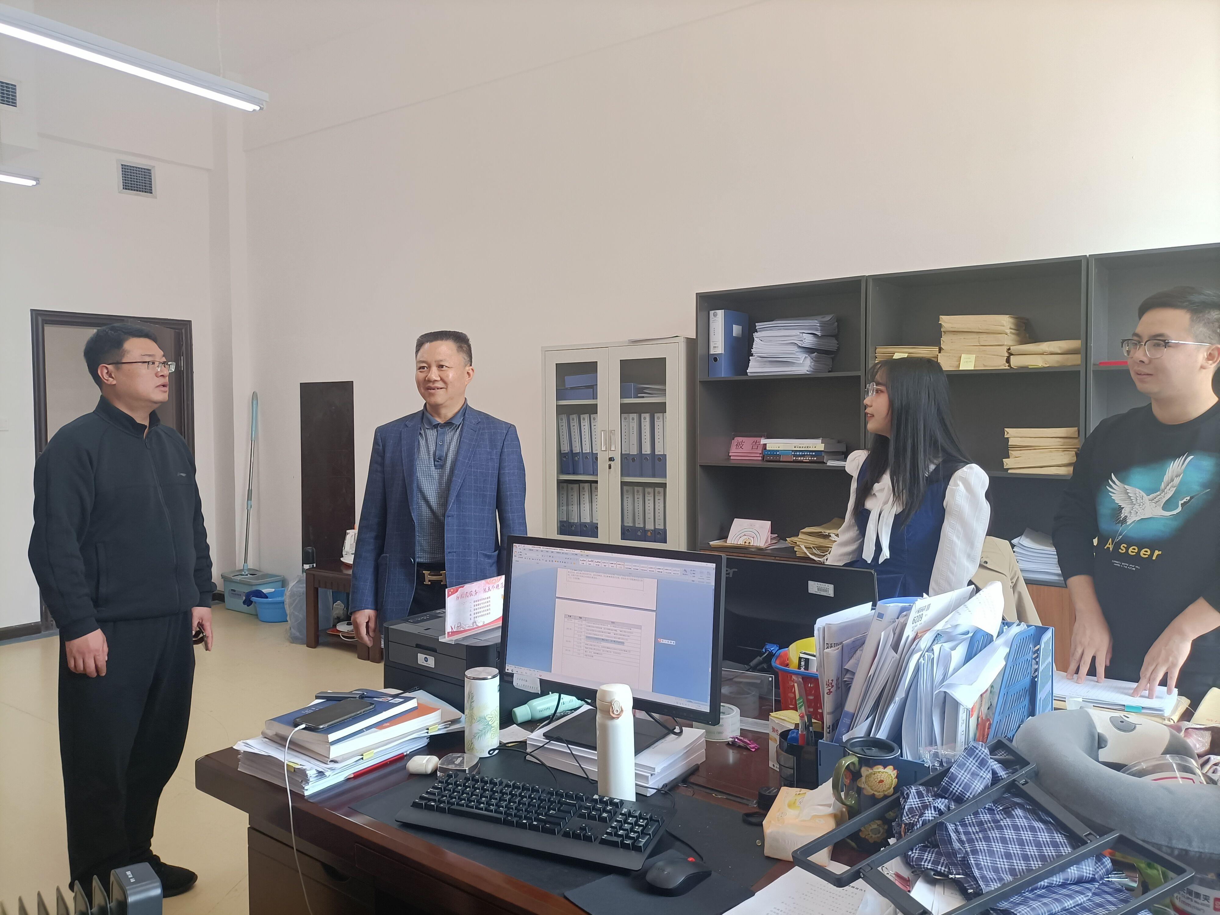 (时博在线(中国)唯一官方网站 图文/报道 徐方)3月9日下午,校党委副书记杨勇到时博在线(中国)唯一官方网站调研指导工作,时博在线(中国)唯一官方网站党委书记詹伟、党委副书记代莉莎陪同调研。