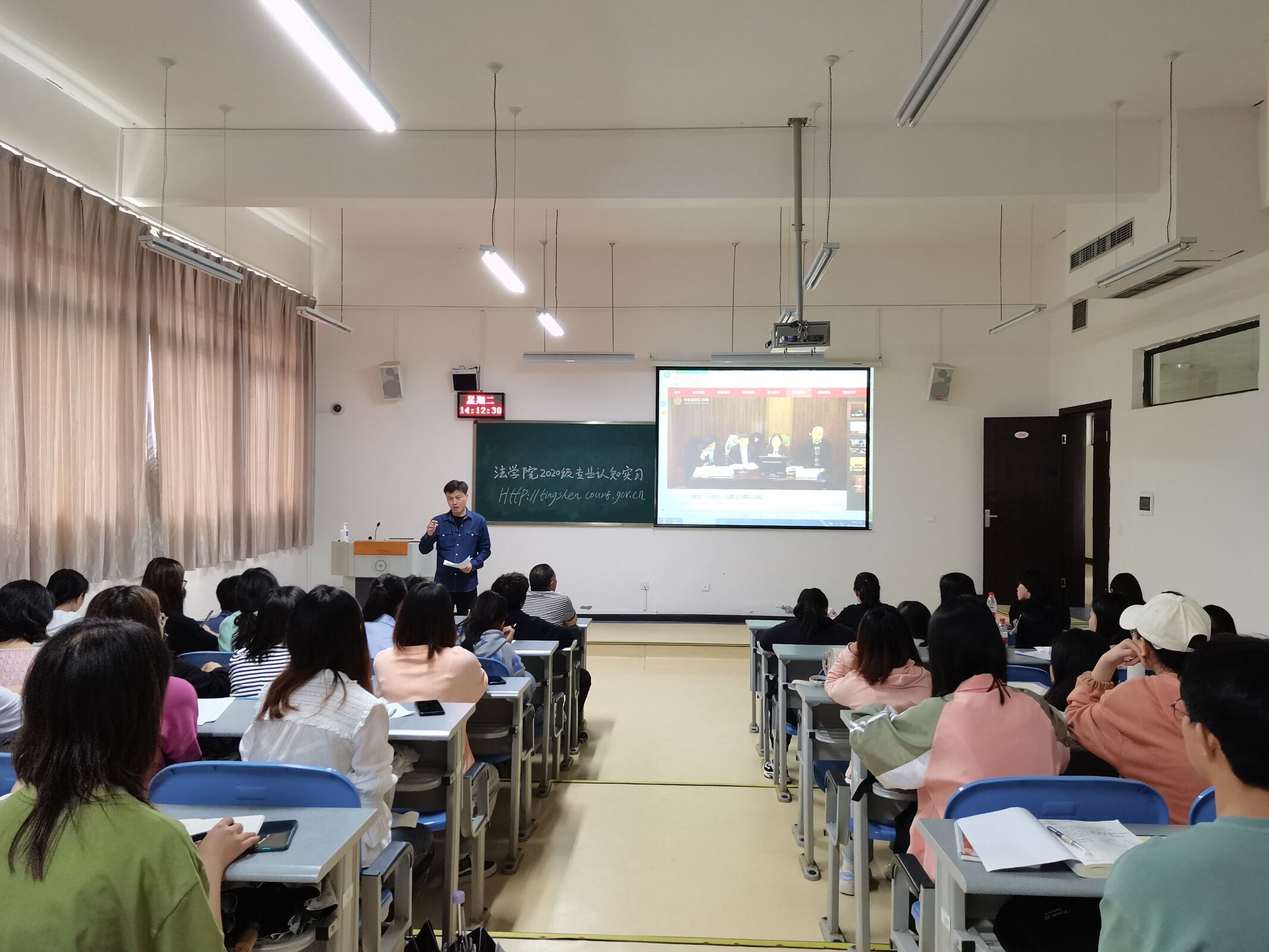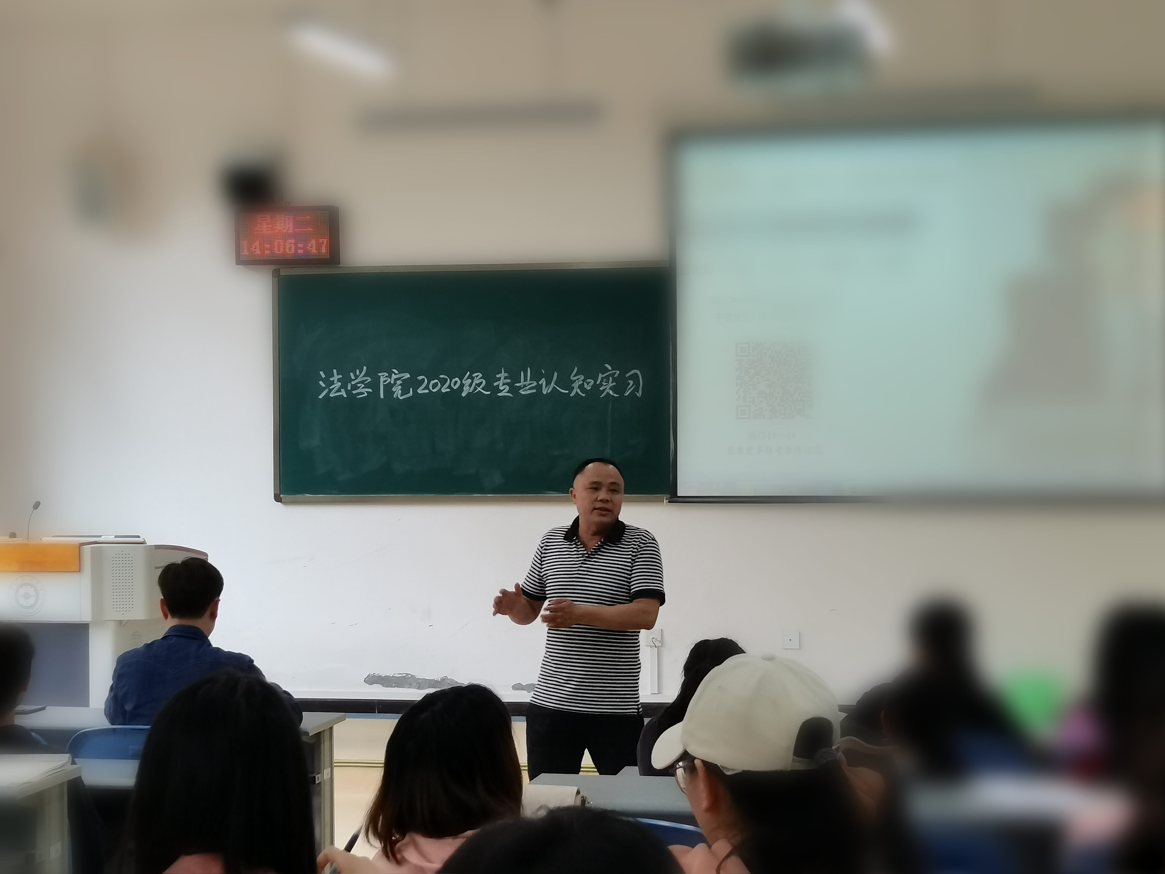 (时博在线(中国)唯一官方网站 图文/报道 何鹏 王振华)为提高我院学生法律实践应用能力,增强实践教学的针对性,充分发挥法学专业学生的能动性。2022年6月14日下午,我院于文德楼106教室开展了以“法学概况与专业介绍”为主题的专业认知实习活动,时博在线(中国)唯一官方网站2020级本科全体同学参与本次活动。学院党委副书记彭华,院党委委员、教授曹务坤,实践教学负责人何鹏老师、时博在线(中国)唯一官方网站教务科科长王振华参会。