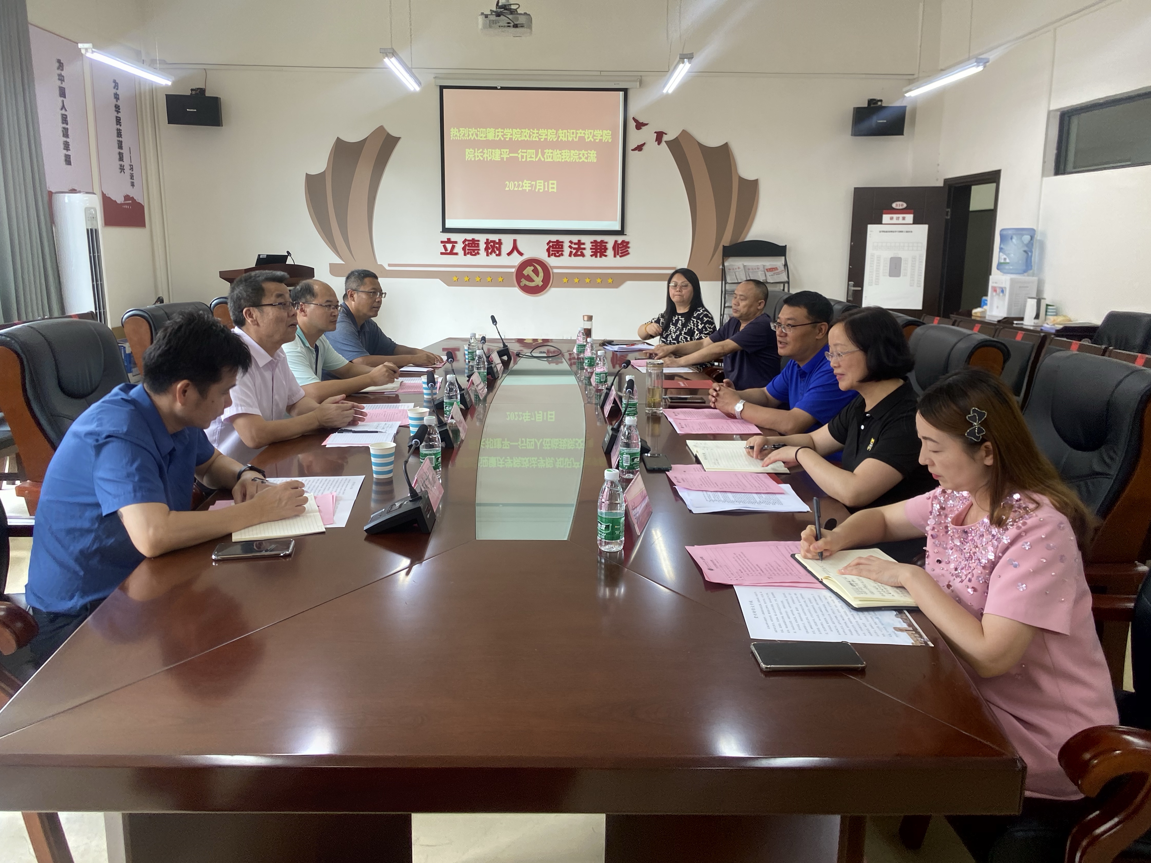 (时博在线(中国)唯一官方网站 图文/报道 张姝)7月1日下午,肇庆学院政时博在线(中国)唯一官方网站/知识产权学院院长祁建平一行四人到我院考察交流,双方在时博在线(中国)唯一官方网站文德楼(A8)310会议室召开交流座谈会。时博在线(中国)唯一官方网站党委书记詹伟,党委副书记、院长陈玉梅,副书记彭华,党委委员曹务坤、宋昭澜出席会议。詹伟主持会议。