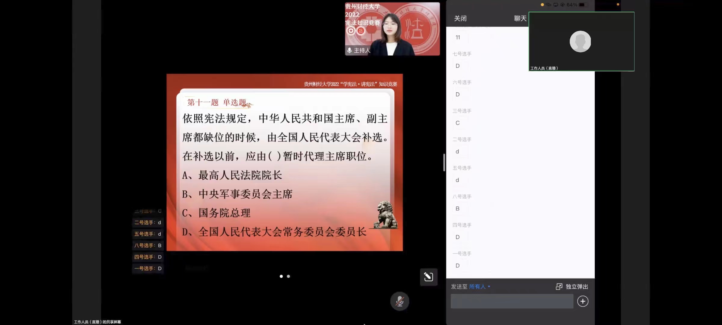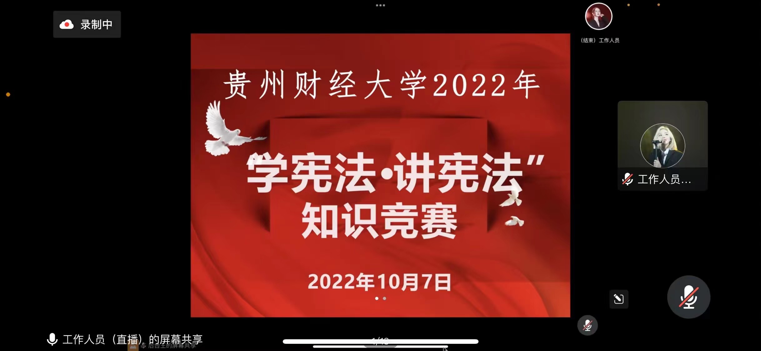 (时博在线(中国)唯一官方网站)为深入学习贯彻习近平法治思想,纪念现行宪法颁布施行四十周年,更好地发挥宪法在全面依法治国和校园文化生活中的重大作用,我校于10月7日下午举行2022年“学宪法 讲宪法”线上知识竞赛。本次比赛由时博在线(中国)唯一官方网站承办,各学院共计八名选手参赛。全校近200余名师生线上观看了比赛,我院武汉大学法学博士谷骞担任评委。