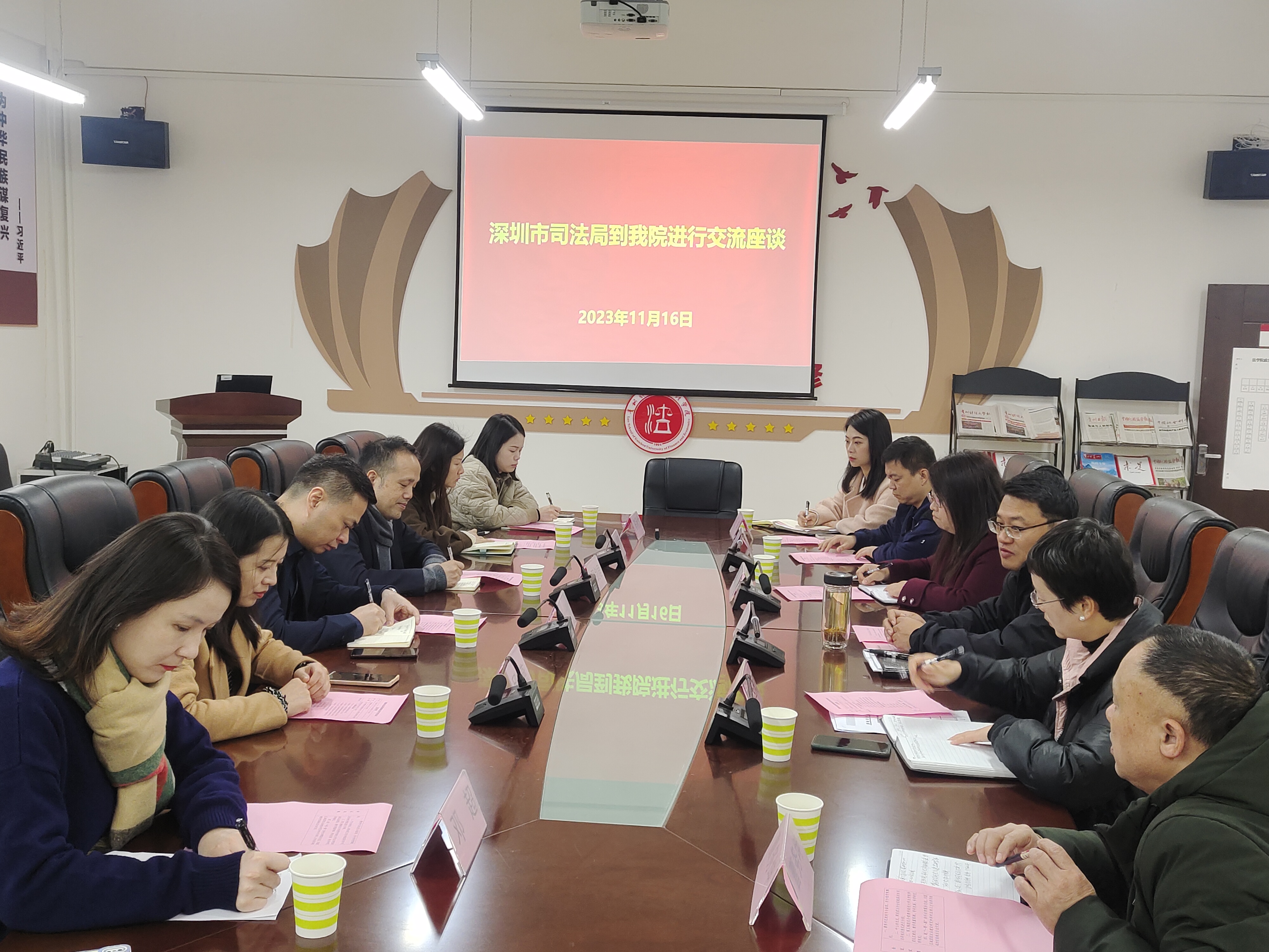 (时博在线(中国)唯一官方网站 图文/报道 张姝)为加强涉外法律服务交流、东盟区域国别法治建设研究和涉外法律人才培养,11月16日上午,深圳市司法局法治调研督查处处长叶士珍一行6人到时博在线(中国)唯一官方网站文德楼310会议室召开交流座谈会。时博在线(中国)唯一官方网站党委书记詹伟,党委副书记、院长陈玉梅,副院长宋昭澜,副院长曹务坤等参加会议。会议由陈玉梅主持。