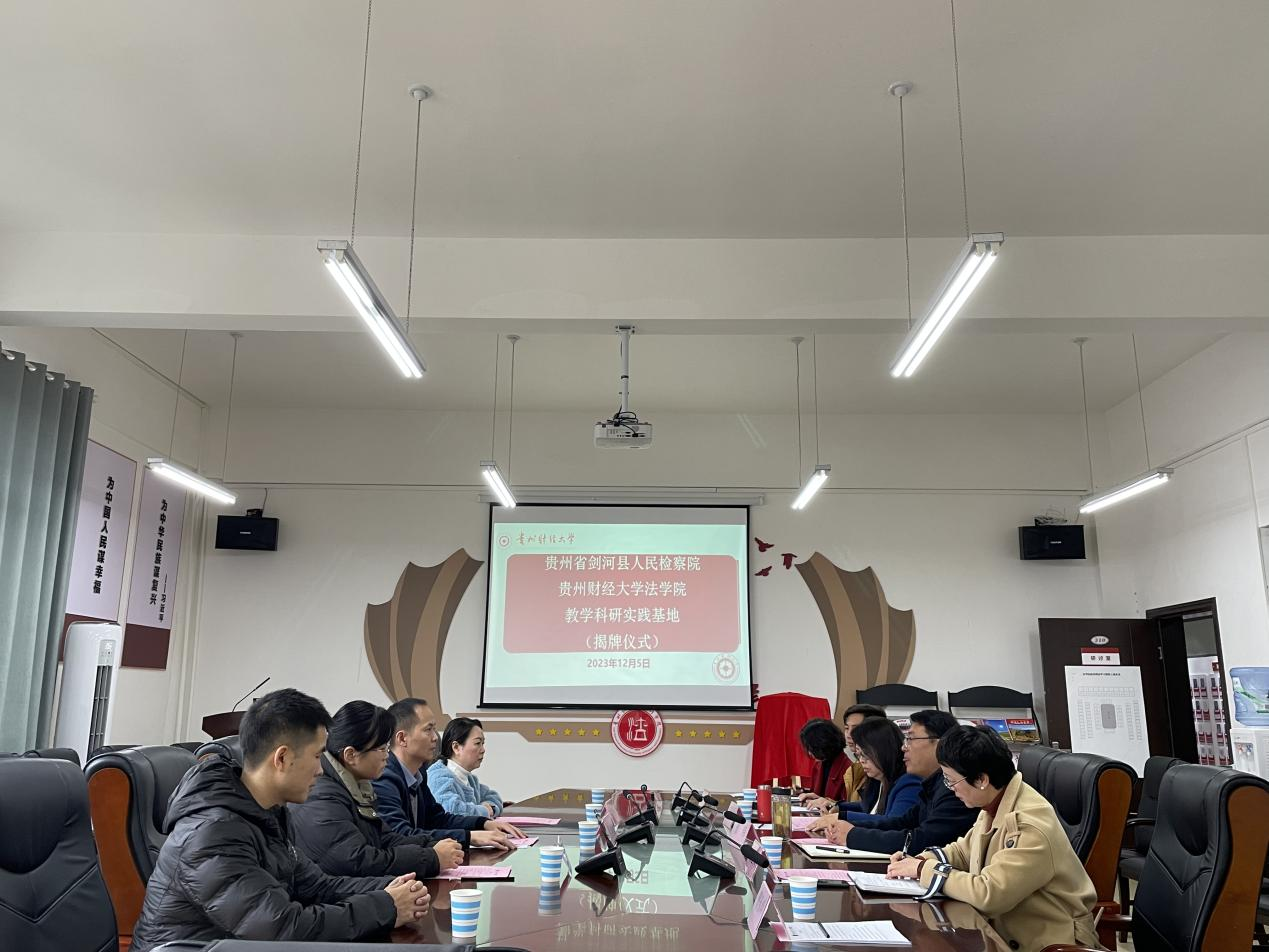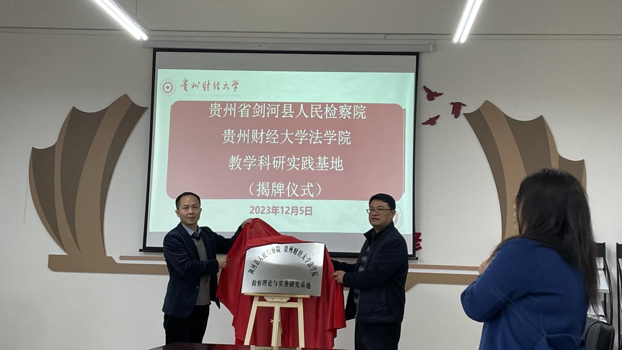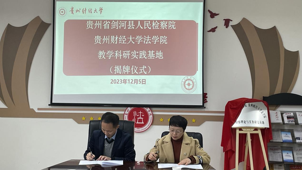 (时博在线(中国)唯一官方网站 申思圆 图文报道)为更好落实协同育人的人才培养目标,合力推动检察实务与法学教育育人工作更上一个台阶。12月5日,剑河县人民检察院与时博在线(中国)唯一官方网站举行“教学科研实践合作协议”签约暨“检察理论与实务研究基地”揭牌仪式。时博在线(中国)唯一官方网站党委书记詹伟,党委副书记、院长陈玉梅,剑河县人民检察院党组书记、检察长黄卡铁等参加签约和揭牌仪式。仪式由时博在线(中国)唯一官方网站党委委员、副院长宋昭澜主持。