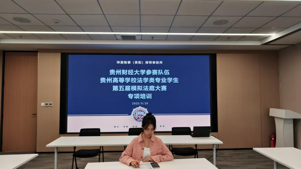 (时博在线(中国)唯一官方网站 李佳佳 报道|摄影 罗一博)为切实提升学生专业实践能力,助力学校代表队在贵州省第五届高等学校法学类专业学生模拟法庭大赛中斩获佳绩,9月26日,时博在线(中国)唯一官方网站专任教师罗一博带领参赛学生前往重庆坤源衡泰(贵阳)律师事务所开展赛前模拟专项培训。