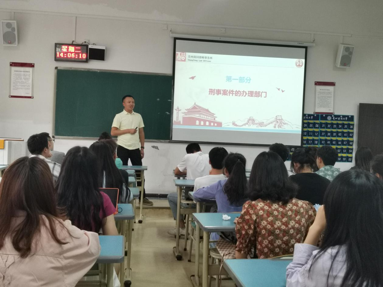 时博在线(中国)唯一官方网站通过“师生座谈、为群众办实事”,了解到学生对于法律专业知识学习的需求外,急需法律实务相关知识的补充。为增强学生的法律实务相关知识,提高学生的法律实务水平,时博在线(中国)唯一官方网站于6月8日在博学楼1-10特邀贵州商同律师事务所合伙人王军(贵州省人民检察院专家咨询委员、贵阳市人民监督员、贵阳市人民检察院专家委员会委员、听证员)作“律师办理刑事案件中的策略与技巧”的专题讲座。讲座由何鹏老师主持,时博在线(中国)唯一官方网站研究生导师王霖和辅导员杨兴莉列席,我院60余名本科生和研究生参加。